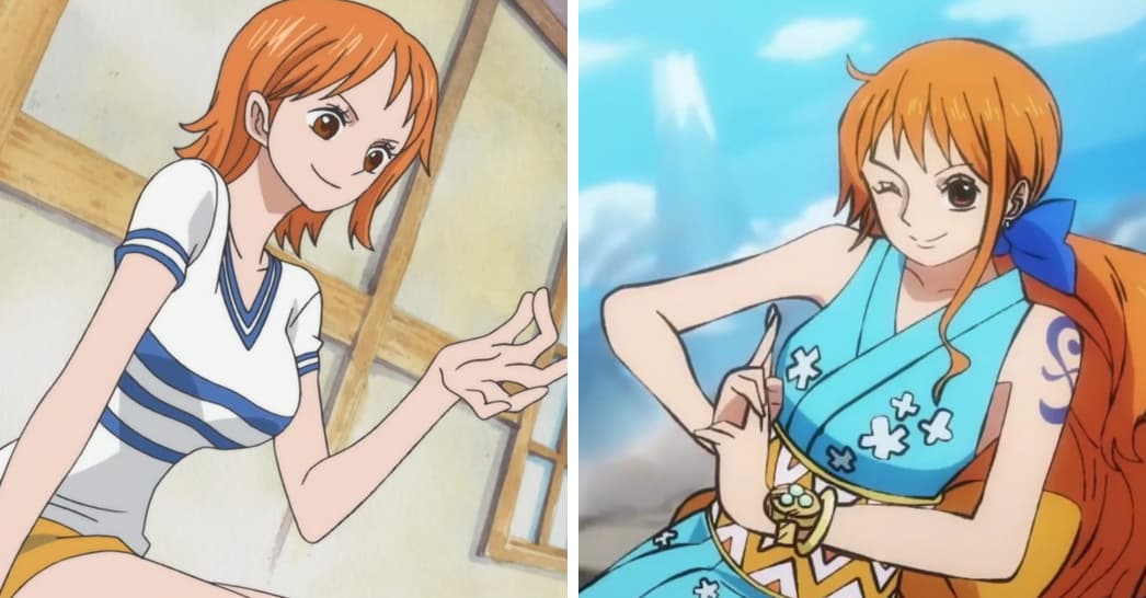 Side By Side Comparison Of Nami And Luffy From The Colors Spreads From Chapter 100 1999 And Chapter 1000 2021 Showing Decidedly Different Proportions In Character Design Particularly With The Foreheads Hands
