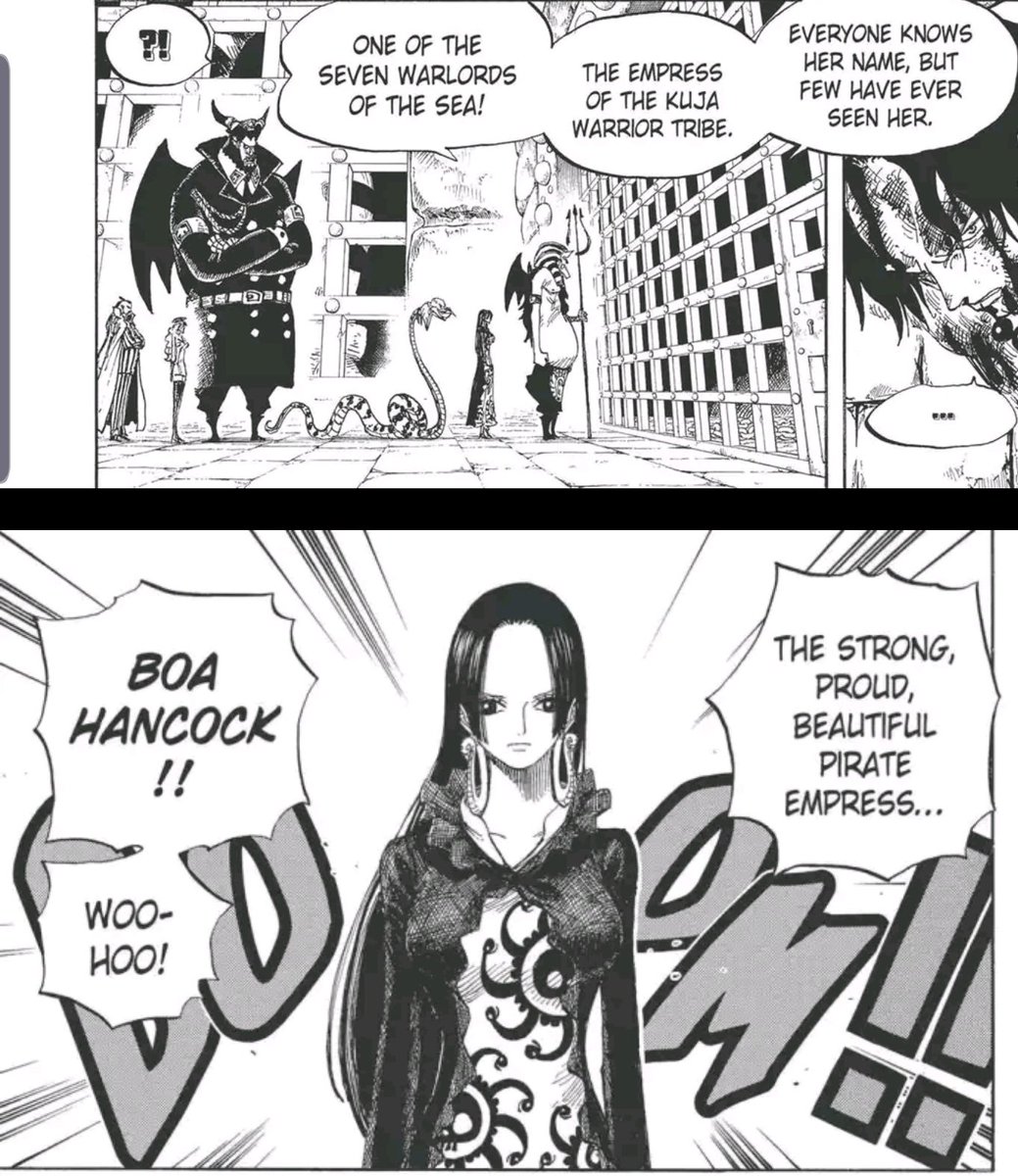 29 Chapter 265 p. Shes one of the elite Kuja warriors and has eaten the Snake-Snake Fruit Hebi Hebi no Mi Anaconda Model although not by choice which allows her to become a large and strong woman-snake. As you said the warriors on Amazon Lily were able to imbue Haki into their arrows so it shows that projectiles can have Haki.