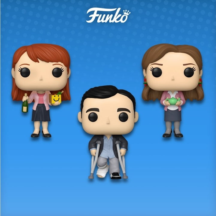 Funko Pop Tv The Office Set Of 3 Erin With Happy Box Champagne Michael Standing With Crutches Pam With Teapot Note Walmart Com
